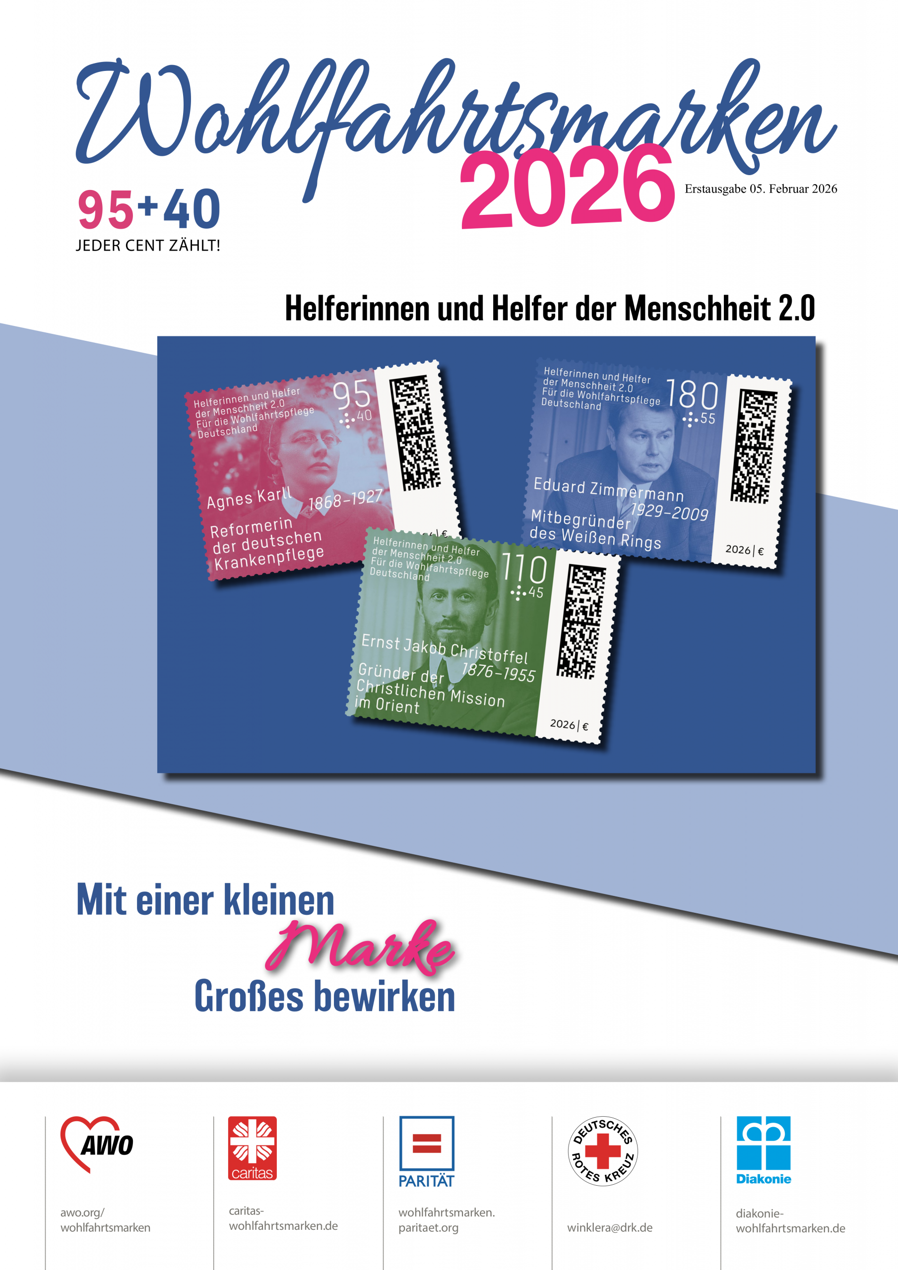 Wohlfahrtsmarken Poster – Helferinnen und Helfer der Menschheit 2.0 2026 – DIN A3 (PDF)