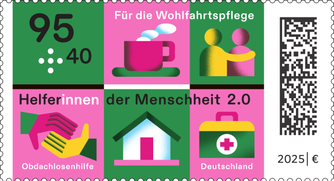 Die Marken gibt es im Shop als Marken-Set „Obdachlosenhilfe“ – selbstklebend (10 x 95+40 ct.)